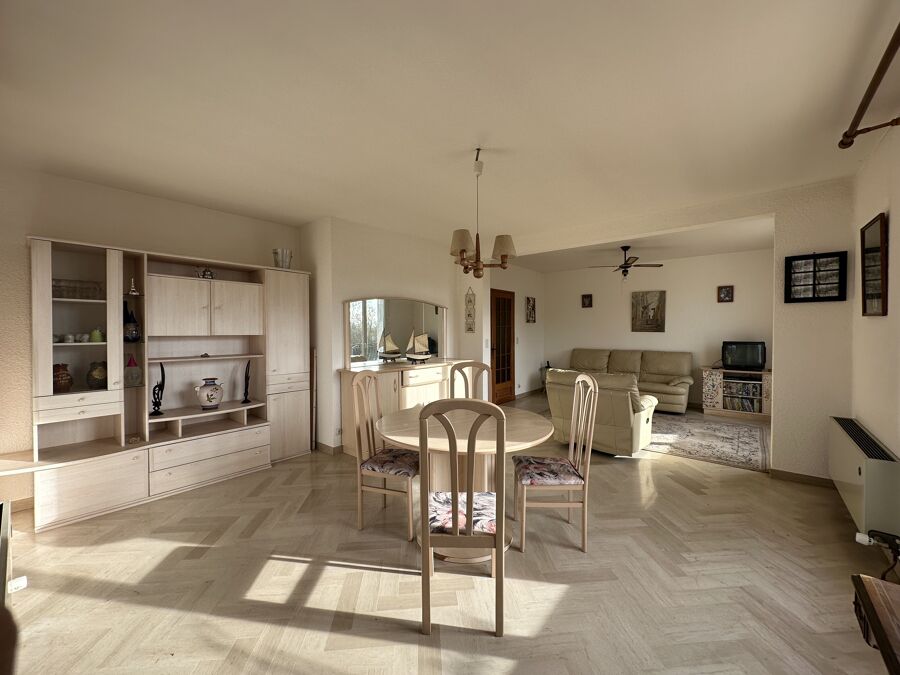 En rez-de-chaussée, un d’un hall d’entrée et un espace d’env. 130 m² proposant 2 grands garages, une chaufferie, un espace atelier et une cave offrant de nombreuses possibilités de rangement et d’aménagement.