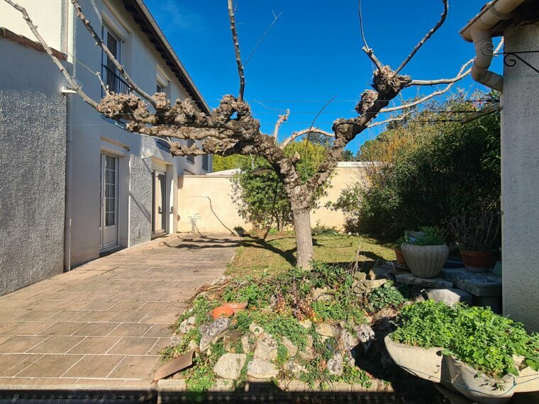Elle dispose d’une spacieuse et lumineuse véranda exposée Sud/Ouest donnant sur le hall d’entrée de la maison, d’une cuisine équipée indépendante et d’un bel espace séjour, tous deux ouvrant sur la terrasse et le jardin avec espace barbecue. En rdc, un accès direct au garage traversant Est côté jardin, et Ouest côté parking.