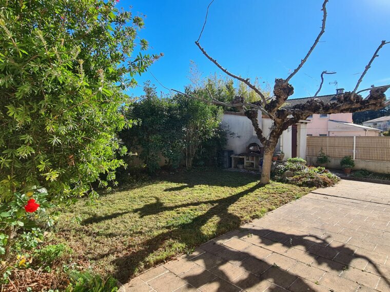 La parcelle d’env. 300 m² est entièrement clôturée et arborée, avec un abri jardin de 6 m² et sa cave.
